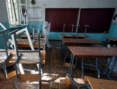 В результате обстрела микрорайона повреждены, как минимум, 10 учебных учреждений.