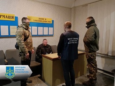 За процесуального керівництва Донецької обласної прокуратури колишньому поліцейському заочно повідомлено про підозру у державній зраді та готуванні до вчинення диверсії в умовах воєнного стану (ч. 2 ст. 111, ч. 1...