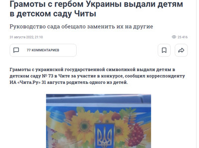 Схоже, що в глибокому тилу ворога, в центрі Забайкальського краю - місті Чита, діють українські партизани всупереч політиці держави-агресора. Партизани наразі ведуть підривну діяльність у дитячому садку № 73 ....