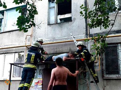12 июля в 16:52 диспетчер Службы спасения получил сообщение о том, что на улице Калмыкова в Константиновке на козырьке подъезда находится мужчина, который нуждается в медицинской помощи.