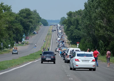 По сообщениям очевидцев, весь транспорт направляется в объезд через Курдюмовку, где организован новый блокпост. "Сегодня в связи с обстрелами движение открылось после 8.00, часть людей оставалась ночевать, успела собраться большая...