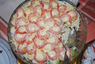 Ингредиенты:● Креветки● Кукуруза 1б.● Листья салата● Авокадо 2шт● Болгарский перец-2шт● Огурец свежий-2шт● Заправить майонезам● Лимон для авокадо что бы не почернел.● Для...