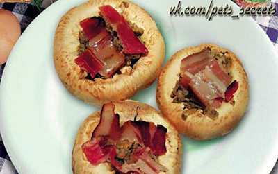 Ингредиенты3–4 крупных шампиньона150 г бекона1 луковица50 г сметаны10 мл растительного маслаперецсольСпособ приготовленияЛук измельчить. Бекон нарезать тонкими ломтиками. У грибов отделить шляпки...