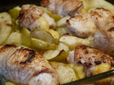 ИнгредиентыКуриная грудка - 400 г.Яблоки кислые или кисло-сладкие — 400 г.Сыр – 100 г.Чеснок – 2-3 зубчика.Масло сливочное (для жарки) — 30 г.Соль, специи...