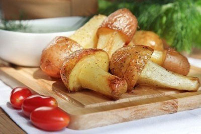 ИнгредиентыКартофель молодой - 1 кг.Растительное масло - 3 ст.л.Соль, перец - по вкусу.Для соуса:Зелень – пучок укропа, пучок петрушки.Сметана - 200 г.Способ приготовления