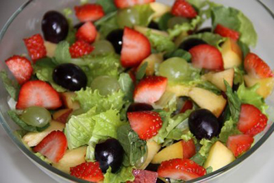 ИнгредиентыВиноград зеленый и черный, желательно без косточек - 250 г.Клубника - 150 г.Нектарин - 1 шт.Мята - несколько веточек.Мед - 1 ст.л.Оливковое масло -...