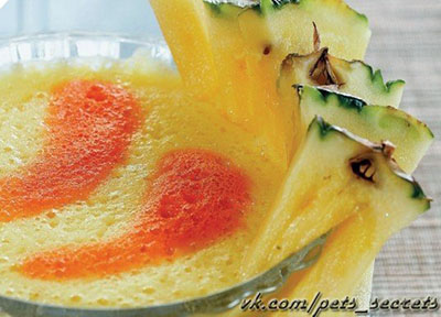 4. Из ананаса и моркови выжать сок. Кусочки яблока поместить...