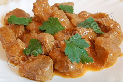 Ингредиенты:Говядина (вырезка) — 500 гМука — 2 ст. л.Масло топленое — 50 гБульон говяжий — 300 мл(или больше, в зависимости от желаемой густоты соуса)Пюре томатное...