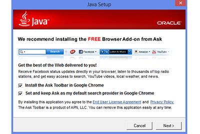 Microsoft предупреждала разработчиков о том, что ею будут предприняты меры против программ, мешающих пользователям менять настройки браузера.Ask Toolbar попадает на компьютер вместе с установкой Oracle Java и меняет в...