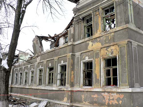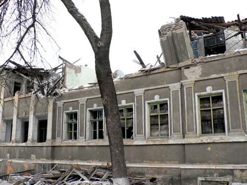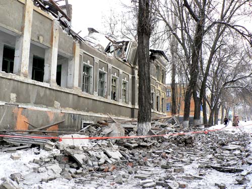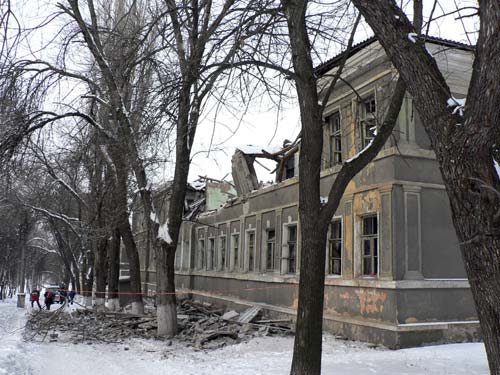 Двухэтажное здание по улице Горького осталось без крыши – обветшавшие стропила не выдержали скопившегося снега. Руководители ЖКХ уверяют, что обрушение не стало неожиданностью. Построенное 74 года назад здание уже 25 лет пустует, все коммуникации отсутствуют. Хозяину дома – министерству образования - не было дела до своего имущества, в итоге в Краматорске появились свои руины.