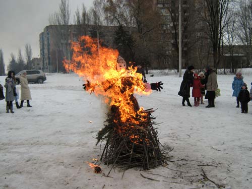 Кульминационным моментом праздника стало  сжигание чучела холодной, лютой зимы – Марены.  Костер долго не хотел разгораться. Из  этой приметы присутствующие сделали заключение, что зима уходить не хочет, и весна будет затяжной, что, кстати, полностью соответствует прогнозам синоптиков.