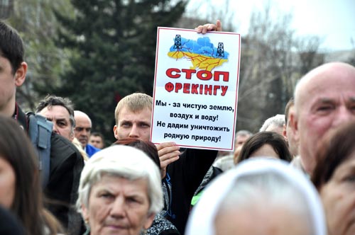 В Краматорске снова прошел «антисланцевый» митинг. В воскресенье, 14 апреля, на центральной площади Краматорска прошел еще один митинг протеста против планов правительства добывать в регионе сланцевый газ.