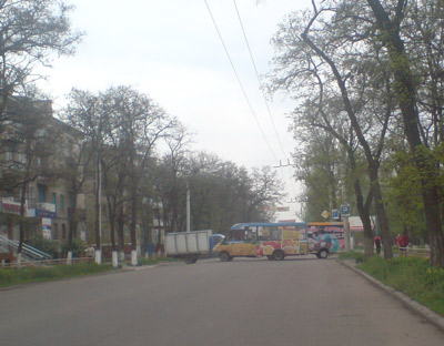 С шести часов утра движение по центру города перекрыто. Улицу Социалистическую перегородили троллейбусами и маршрутками. Улицу Дворцовую - маршрутками. Возле кафе "Молодежное" на улице Парковой стоят неизвестные люди и не пропускают...