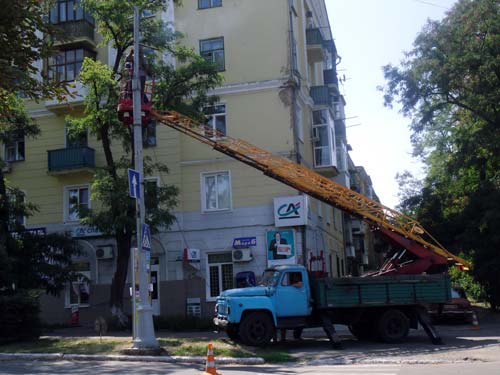 В понедельник, 6 августа на проспекте Мира меняли светильники наружного освещения.