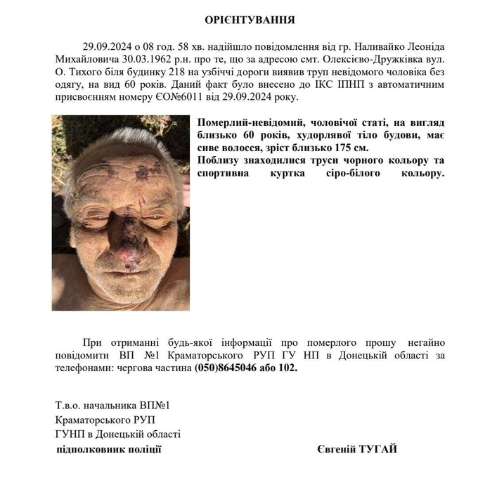 Сьогодні вранці в Олексієво-Дружківці, на узбіччі дороги, було знайдено тіло невідомого чоловіка без одягу. Подробиці в орієнтуванні поліції: