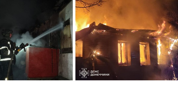 Вчора вночі ворог обстріляв дронами приватний сектор міста Слов’янська, спричинивши пожежу житлового будинку. Надзвичайники ліквідували загоряння на площі 72 кв. м. Загалом через обстріли пошкоджень зазнали 14 будинків і автомобіль.