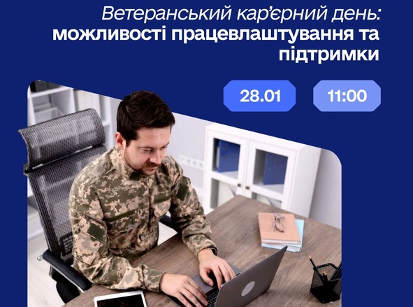 Донецький обласний центр зайнятості запрошує ветеранів і ветеранок, учасників бойових дій та членів їхніх родин на інформаційний онлайн-захід, присвячений новим кар’єрним можливостям, професійному розвитку та державній підтримці.