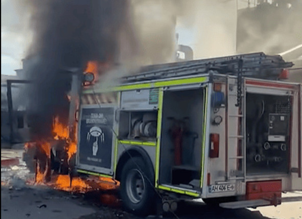 Головне управління ДСНС України у Донецькій області повідомляє, що під час ліквідації наслідків авіаудару в Олексієво-Дружківці ворожі дрони двічі вдарили по рятувальникам, знищивши пожежний автомобіль.