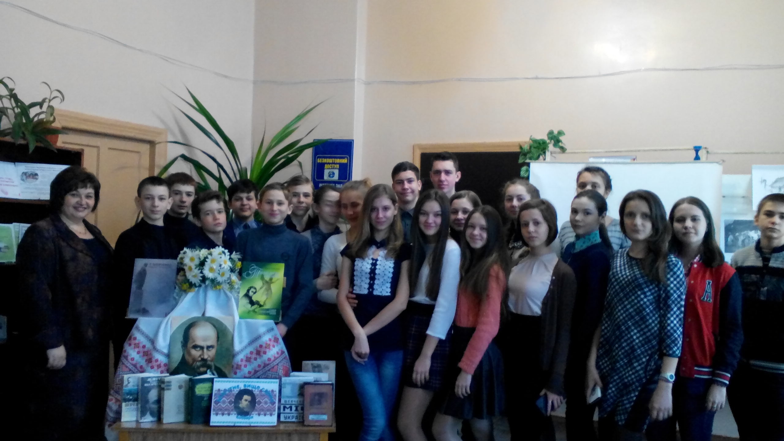В історії кожного народу є імена, які він свято береже у своїй пам’яті і з великою любов’ю та повагою передає з покоління в покоління. Є таке ім’я і у нашого народу — Тарас Шевченко. Не було і немає в Україні поета, який був би йому подібний. Не було у неньки України сина, який так ніжно і віддано любив би свій народ і так страждав за нього. 8 та 9 березня 2016 р. з нагоди дня народження Т. Г. Шевченка в бібліотеці імені А. Чехова відбувся літературно-мистецький захід «Тарас Шевченко - поет, художник, мислитель». Гостями бібліотеки були учні 6, 7 та 8 класів ЗОШ № 6 та № 11. Провідний бібліотекар Шкарупа Валентина Володимирівна цікаво розповіла школярам про життєвий шлях Шевченка від кріпака до вільної людини та презентувала відеосюжети про невідомі сторінки його творчості. Емоційного забарвлення надала заходу віртуальна картинна галерея Шевченка-митця, адже він був не лише поетом, а й драматургом, прозаїком, етнографом, фольклористом і художником, який залишив велику образотворчу спадщину — понад тисячу творів. Учні з цікавістю розглядали репродукції картин цієї талановитої людини. Нікого не залишили байдужим його роботи «Катерина», «Сліпа», «Циганка-ворожка» та інші, адже багато з них створено за мотивами з народного життя. На завершення заходу бібліотекар познайомила учнів з літературою про життєвий та творчий шлях Кобзаря, представленою на книжковій виставці, яка повніше розкрила образ Шевченка не лише як поета і художника, а й геніальної людини.