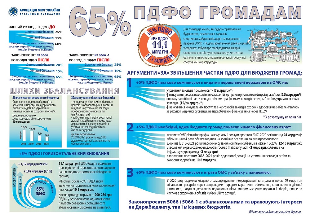 65% ПДФО має залишатися для розвитку територіальних громад, – вважають в Асоціації міст України.