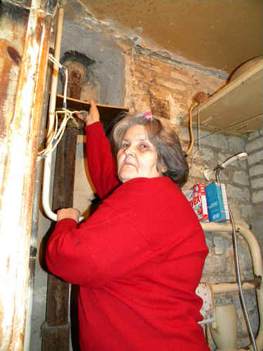 – Ступеньки разрушены, дверь в подъезд не закрывается. Жильцы в морозы обматывают трубу водоснабжения старым матрасом, чтобы не замерзала. Стекол в подъезде тоже нет. Вместо них – листы фанеры.
