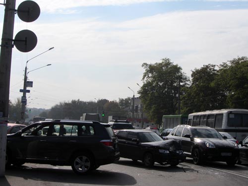 12 октября около полудня на улице Орджоникидзе рядом с остановкой "ЦГБ" (Новый Свет), столкнулись «Джип Toyota» и «ВАЗ-2110».