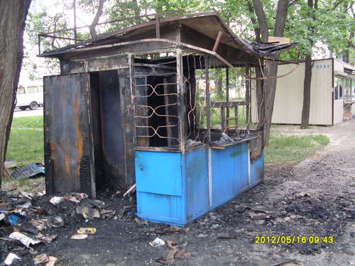 Рано утром 16-го мая практически дотла сгорел металлический киоск, который был установлен недалеко от проходных...