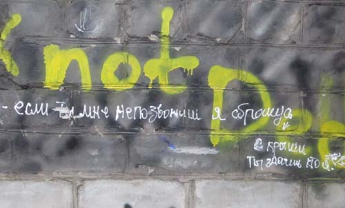 24-го марта в Славянске по ул. Карла Маркса, возле 38-го дома (напротив Химтехникума), было обнаружено тело 16-летней девочки. Оно лежало между цементными блоками, в проеме фундамента недостроенной части дома. Девочка, как следует из сводки ГОВД, оставила на стене надпись, которая свидетельствует о безответной любви.