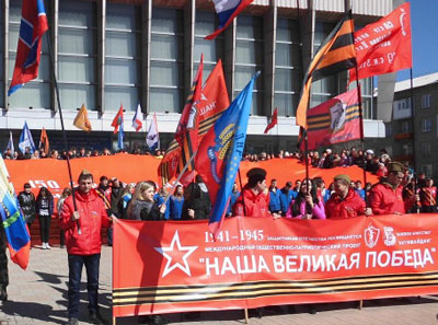 В ответ на запрет в Украине пропаганды и символики коммунизма и нацизма в "ЛНР" украсили Луганск флагами коммунистической партии.