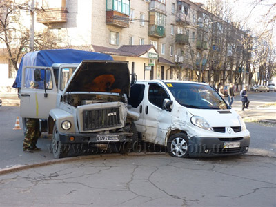 В Славянске не поделили перекресток военный ГАЗон и RENAULT TRAFIC. Водители живы, пассажирка микроавтобуса госпитализирована.
