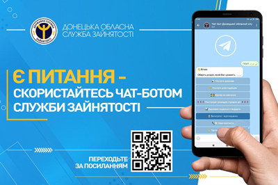 Донецька обласна служба зайнятості оновила свій чат-бот у месенджері Telegram. Онлайн-сервіс зручний у використанні та забезпечує цілодобовий доступ до актуальної інформації про: