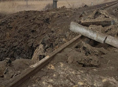 Про зруйновану ділянку залізниці повідомляє керівник Слов'янської ВА Вадим Лях.