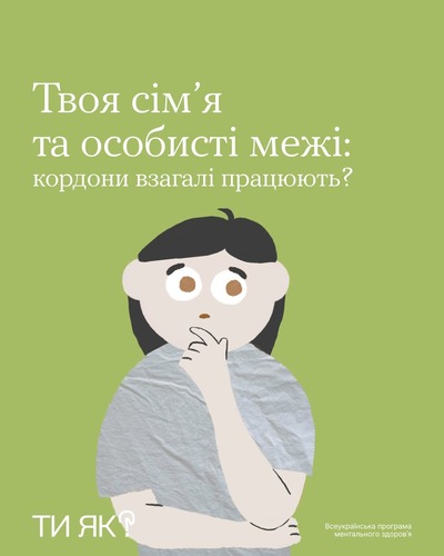 Особисті кордони потрібні тобі навіть у взаємодії з рідними. Коли ти знаєш свої межі й можеш говорити про них, і в сімейних стосунках буде менше образ, менше вигорання, більше поваги...