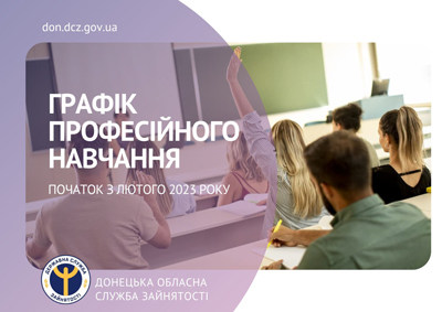 Донецький обласний центр зайнятості інформує про орієнтовний графік на лютий 2023 року, за яким планується навчання безробітних у центрах професійно-технічної освіти Державної служби зайнятості.