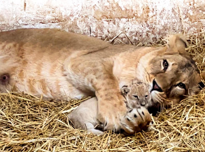 Левиця, яку евакуювали із Донецької області, виявилась вагітною та народила в трьох левенят.