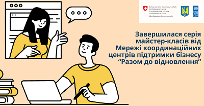 Завершилась серія безкоштовних майстер-класів, що реалізована Мережею координаційних центрів підтримки бізнесу “Разом до відновлення” за підтримки ПРООН. Загалом відбулось 14 експертних заходів, у яких взяли участь понад 170 підприємців Донецької, Запорізької,...Детальніше... Додати коментар