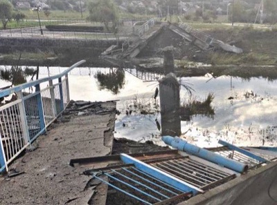 У Бахмуті вибухом було знищено пішохідний міст через річку Бахмут (Бахмутка).