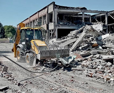 Сьогодні знову особовий склад 8-го державного пожежно-рятувального загону Головного управління приступив до проведення аварійно-рятувальних робіт на зруйнованій внаслідок обстрілу двоповерховій будівлі ремонтної бази залізниці в місті Бахмут.