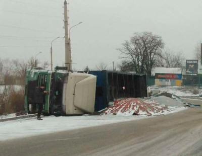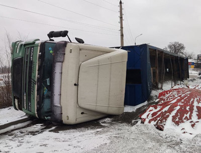 Фура, перевозившая семена подсолнечника, не вписавшись в поворот, выехала на обочину дороги и перевернулась. Это произошло еще ночью. Причиной аварии стал не только гололед, но и "лысая" резина.