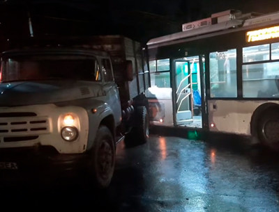 Грузовой автомобиль ЗИЛ сбил и переехал парня, который переходил дорогу на зеленый сигнал светофора. Пострадавший госпитализирован с телесными повреждениями.