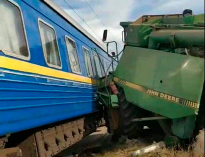 В поезд, следующий по маршруту «Бахмут — Львов», на ходу врезался комбайн John Deere, повредив локомотив и шесть пассажирских вагонов. Об этом сообщают в пресс-службе Укрзализныци.