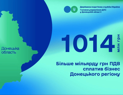 У січні-вересні поточного року суб'єкти господарювання Донеччини сплатили до державного бюджету 1 млрд 14 млн податку на додану вартість, що на 287 млн грн більше за торішні показники.