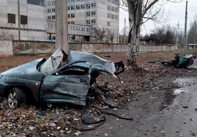 В районе Машмета автомобиль ВАЗ после столкновения с препятствием разорвало на части.