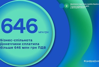 За І півріччя 2024 року від платників Донецького регіону до державного бюджету надійшло 646,1 млн грн податку на додану вартість, що на 180,6 млн грн більше за торішні показники.