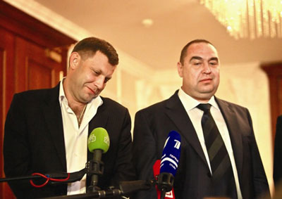 Лидеры самопровозглашенных «ЛНР» и «ДНР» провели совместный брифинг. Захарченко и Плотницкий претендуют уже не только на территорию и людей, но и на промышленные предприятия по ту сторону линии разграничения.