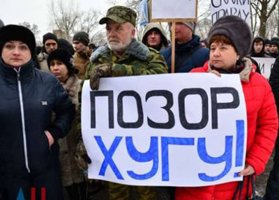 В Донецке боевики собрали жителей, чтобы те выразили протест против неэффективной работы мониторинговой миссии ОБСЕ.Участники принесли с собой заготовленные плакаты с надписями «ОБСЕ, открой глаза», «Хуг – агент Киева», «Хуг,...