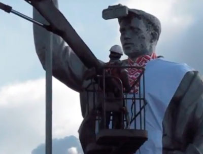Один из символов Мариуполя - памятник сталевару на въезде в город - одели в вышиванку.Инициатором акции, которую приурочили к 120-летию Мариупольского меткомбината им. Ильича, стала Молодежная организации ММКИ."Наш сталевар,...