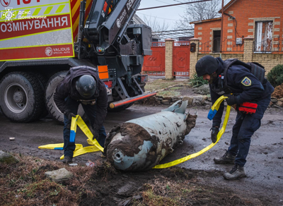 Російську півторатонну авіабомбу ФАБ-1500 з модулем керування УПМК вилучили та знищили піротехніки ДСНС у місті Селидове.