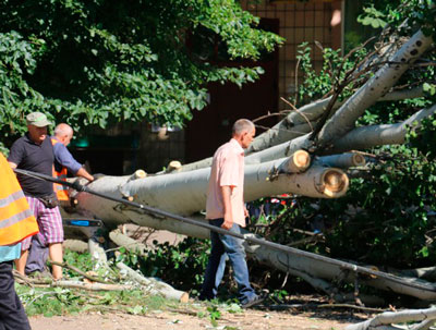 Сегодня ночью в Славянске во дворе дома 89 по улице Банковской произошло ЧП – обрушился старый тополь.Вследствие этого упал столб линии электропередач, жильцы близлежащих домов остаются без света.Инцидент...