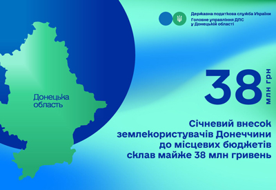 За перший місяць 2024 року місцеві бюджети Донецької області отримали 37,9 млн грн плати за землю. Зокрема, від юридичних осіб надійшло 33,8 млн грн, а від фізичних осіб – 4,1 млн...